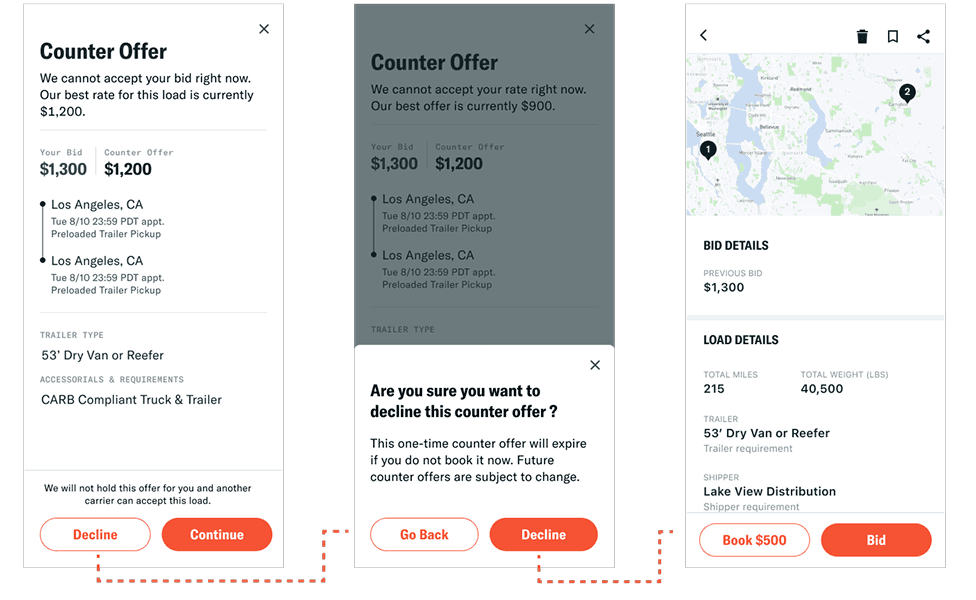 When a carrier’s bid was rejected, the team debated whether to “soften” the rejection message — for example, by adding friendlier language (“Your bid wasn’t accepted this time, but we’d love to see you bid again soon!”) or subtle hints (“Try bidding slightly higher next time”).